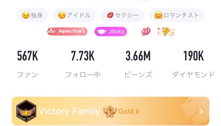 例えば、こちらのライバーは3,660,000ビーンズを持っています(Million=100万)。