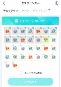 チェックインでは、様々なギフトがもらえますが、タスクではコインのみがもらえます。