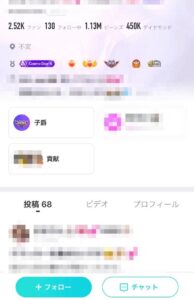 下の方にはファミリーやファンクラブなどが表示されます。
